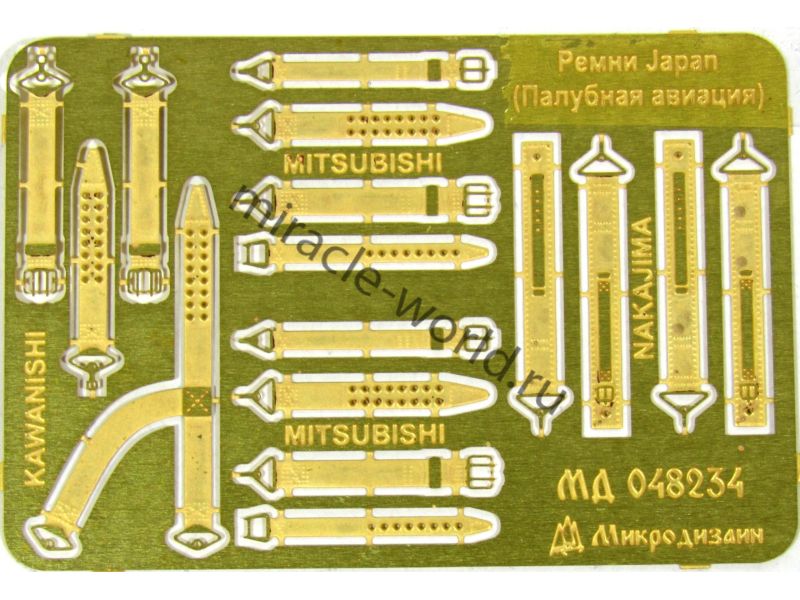 МД 048234 Набор фототравления ремней привязных авиационных Япония (палубна авиация) периода Второй мировой войны. Масштаб 1:48, Материал: латунь 0,15 мм. Набор комплектуется пластиной фототравления Количество уникальных деталей 8. Уровень сложности: начальный.
