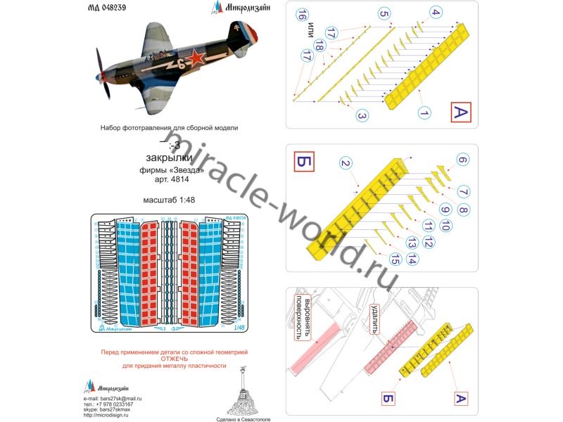МД 048239 Набор фототравления закрылков для Як-3 от Звезды. Масштаб 1:48, Материал: латунь 0,17 мм. Набор комплектуется пластиной фототравления и полноцветной инструкцией. Уровень сложности: средний.