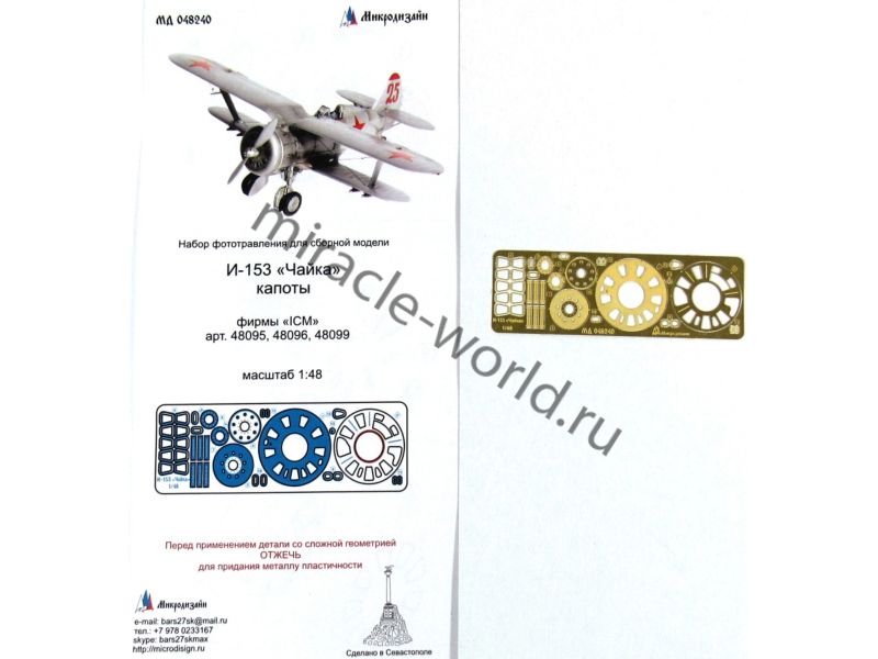 Микродизайн 048240 И-153 "Чайка" (ICM) /капоты, набор фототравления/