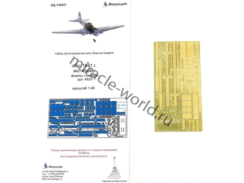 МД 048007 Набор фототравления экстерьера на Ил-2 от Звезды. Масштаб 1:48, Материал: латунь 0,15 мм. Набор комплектуется пластиной фототравления и полноцветной инструкцией. Количество уникальных деталей 52. Уровень сложности: средний.