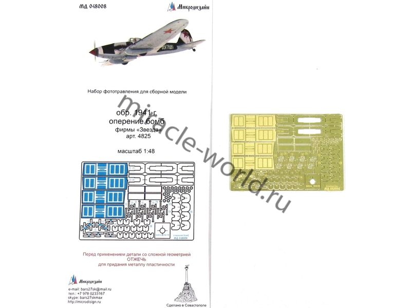 МД 048008 Набор фототравления на Ил-2 (отделка бомбоотсеков и оперение бомб) от Звезды. Масштаб 1:48, Материал: латунь 0,15 мм. Набор комплектуется пластиной фототравления и полноцветной инструкцией. Количество уникальных деталей 29. Уровень сложности: средний.