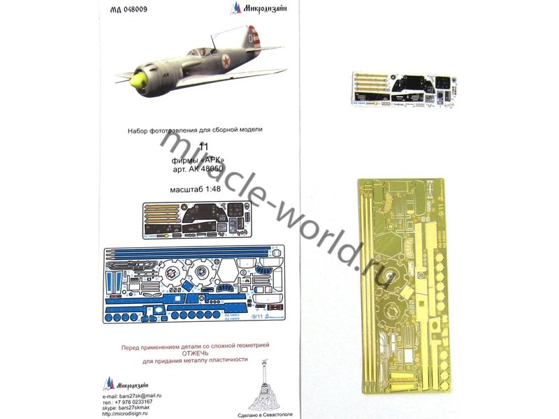 МД 048009 Набор фототравления на Ла-11 от АРК. Масштаб 1:48, Материал: латунь 0,15 мм. Набор комплектуется 2 пластинами фототравления (в том числе одной цветной пластиной приборной доски, ремней) и полноцветной инструкцией. Количество уникальных деталей 64. Уровень сложности: средний.