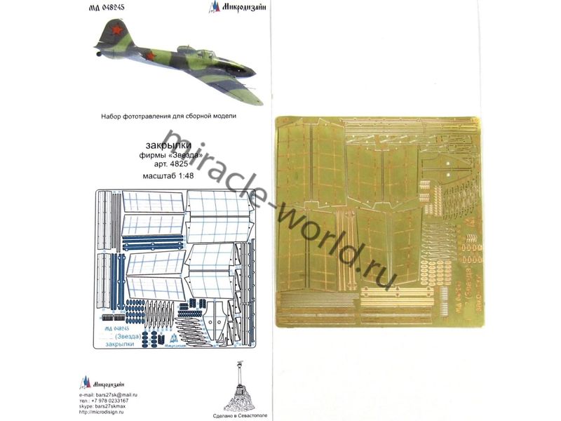 МД 048245 Набор фототравления на Ил-2 (закрылки) от Звезды. Масштаб 1:48, Материал: латунь 0,17 мм. Набор комплектуется пластиной фототравления и полноцветной инструкцией. Количество уникальных деталей 52. Уровень сложности: средний.
