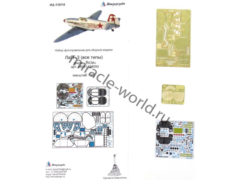 МД 048016 Набор фототравления на ЛаГГ-3 от ICM. Масштаб 1:48, Материал: латунь 0,15 мм. Набор комплектуется 3 пластинами фототравления (в том числе одной цветной пластиной приборной доски, ремней) и полноцветной инструкцией. Количество уникальных деталей 71. Уровень сложности: средний.