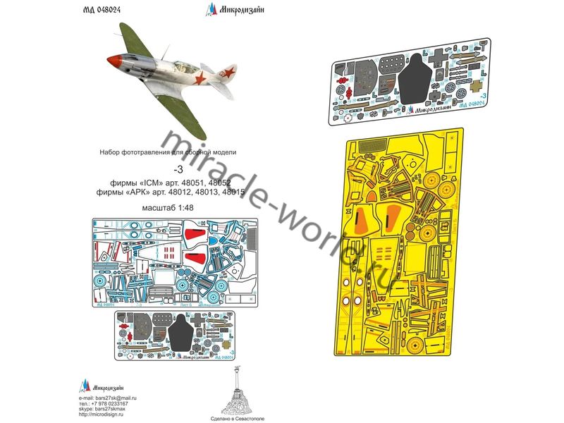 МД 048024 Набор фототравления на МиГ-3 от ICM, АРК. Масштаб 1:48, Материал: латунь 0,15 мм. Набор комплектуется 2 пластинами фототравления (в том числе одной цветной пластиной приборной доски, ремней) и полноцветной инструкцией. Количество уникальных деталей 101. Уровень сложности: средний.