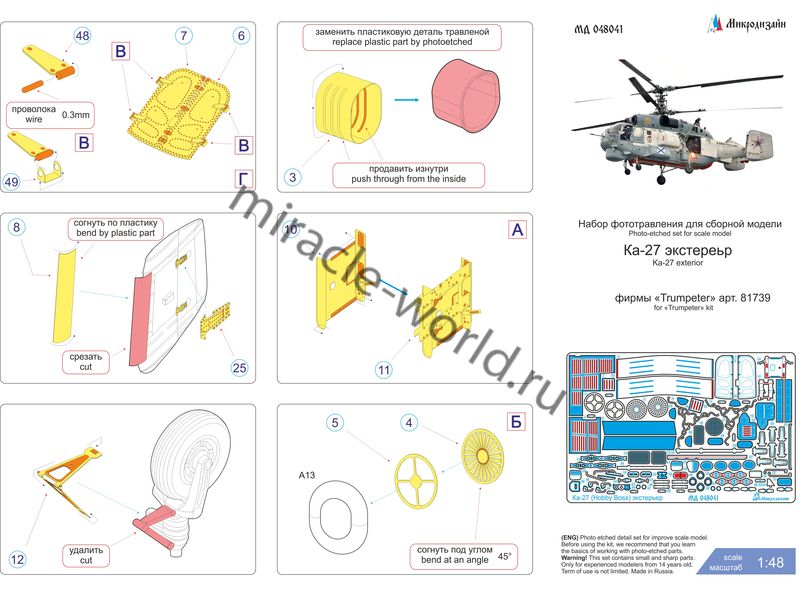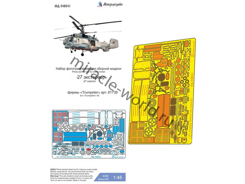 МД 048041 Набор фототравления на вертолет К тип 27 (экстерьер) от Hobby Boss. Масштаб 1:48, Материал: латунь 0,17 мм. Набор комплектуется пластиной фототравления и полноцветной инструкцией. Количество уникальных деталей 49. Уровень сложности: средний.