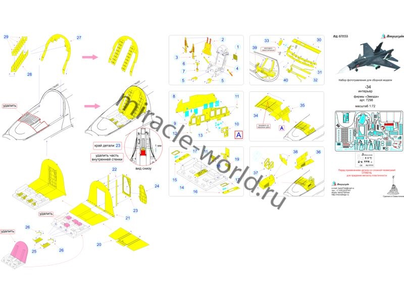 МД 072233 Набор фототравления на Су-34 (интерьер) от Звезды. Масштаб 1:72. Материал: латунь 0,17 мм. Набор комплектуется пластиной фототравления, пленкой приборных досок и цветной инструкцией. Уровень сложности - средний.