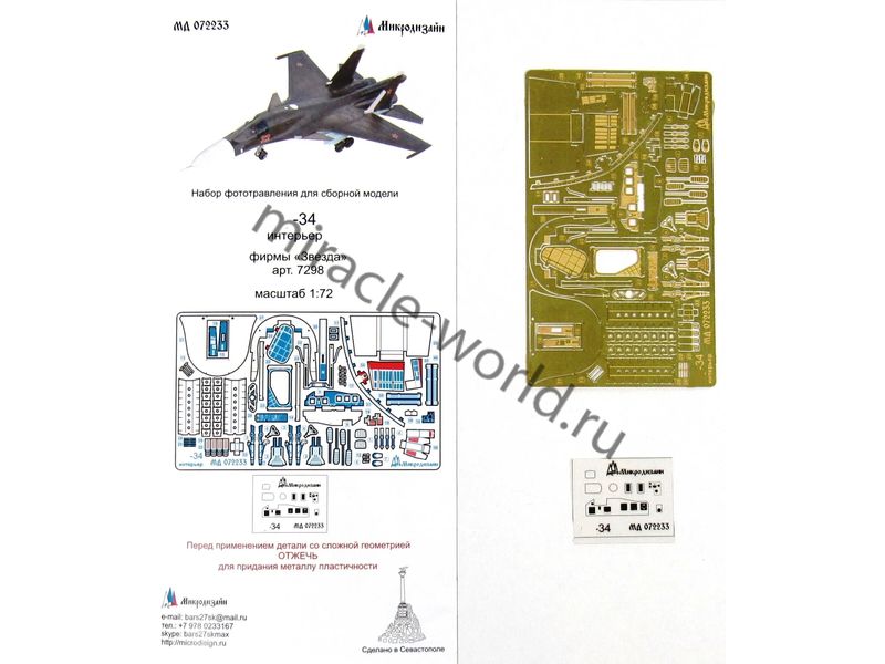 Микродизайн 072233 Самолет (С) тип 34 (Звезда) /интерьер, набор фототравления/ 1/72