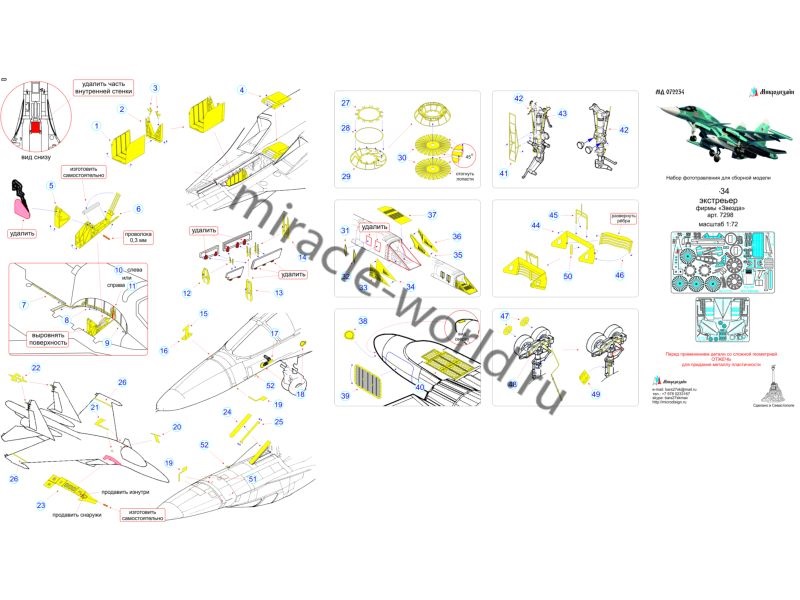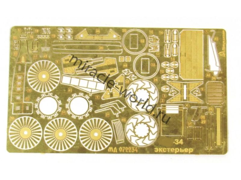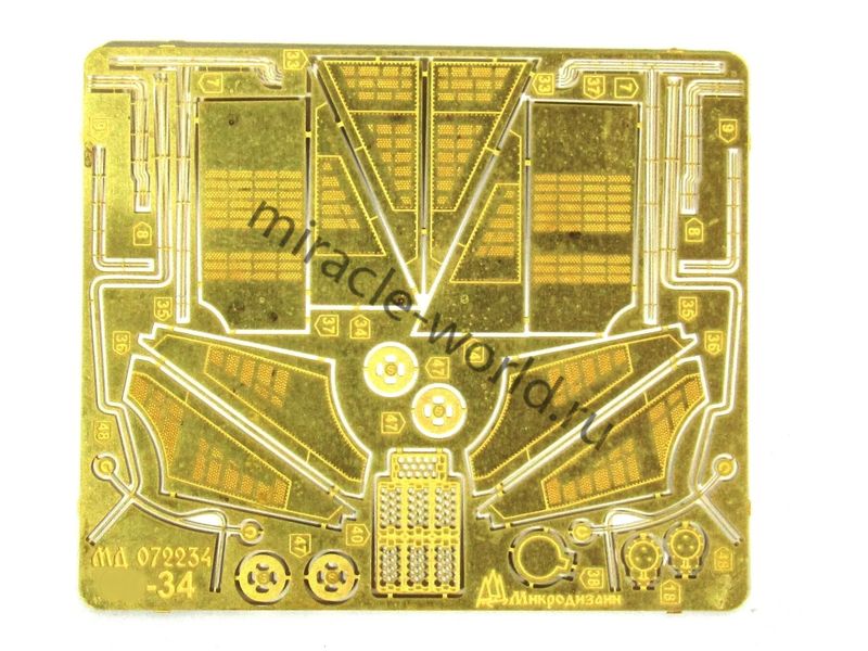 МД 072234 Набор фототравления на Су-34 (экстерьер) от Звезды. Масштаб 1:72. Материал: латунь 0,17 мм, 0,12 мм. Набор комплектуется 2 пластинами фототравления и цветной инструкцией. Количество уникальных деталей - 47. Уровень сложности - средний.