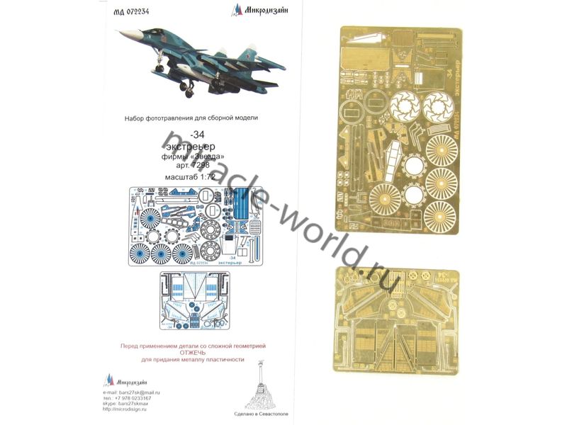 Микродизайн 072234 Самолет (С) тип 34 (Звезда) /экстерьер, набор фототравления/ 1/72