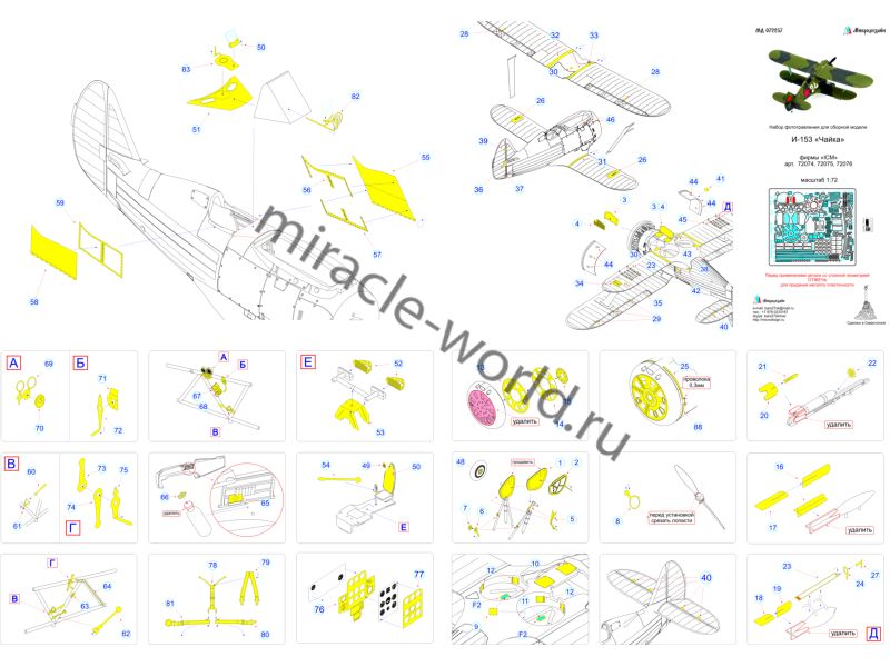 МД 072257 Набор фототравления для модели И-153 от ICM. Масштаб 1:72. Материал: латунь 0,15 мм. Набор комплектуется пластиной фототравления и цветной инструкцией. Количество уникальных деталей - 74. Уровень сложности - средний.