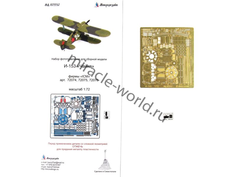 Микродизайн 072257 И-153 "Чайка" (ICM) /набор фототравления/ 1/72