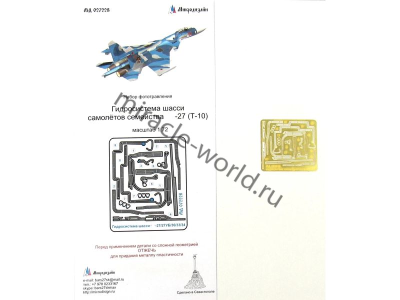 МД 072228 Набор фототравления гидросистемы шасси на самолеты семейства Су-27 (Т-10). Масштаб 1:72. Материал: латунь 0,17 мм. Набор комплектуется пластиной фототравления и цветной инструкцией. Уровень сложности - средний.