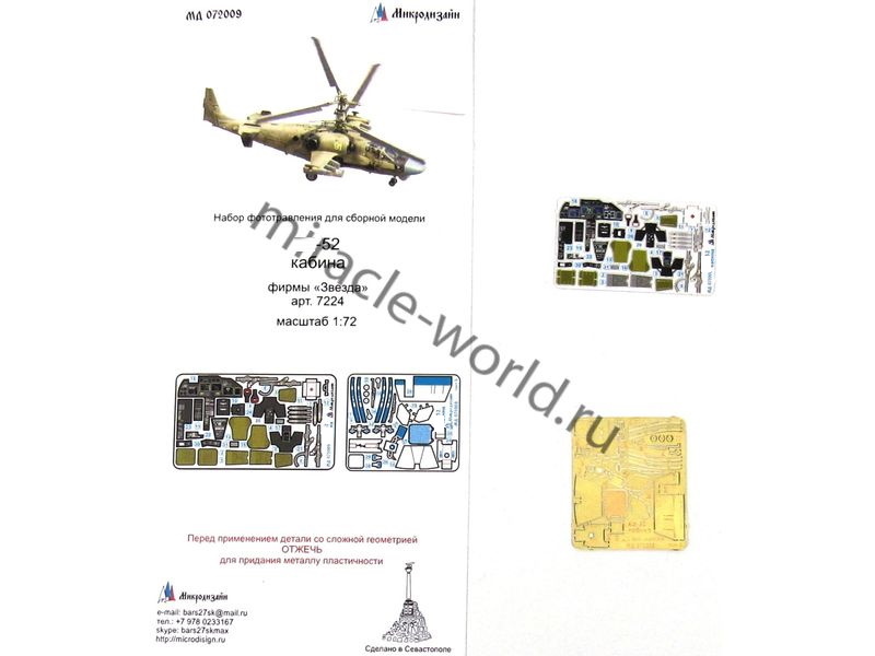Микродизайн 072009 Вертолет (К) тип 52 (Звезда) /фототравление и цветные объемные приборки/ 1/72