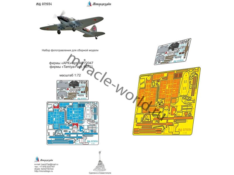 Микродизайн 072034 Самолет (И) тип 2 (ARK Models) /фототравление и цв. объемные приборные доски/ 1/7
