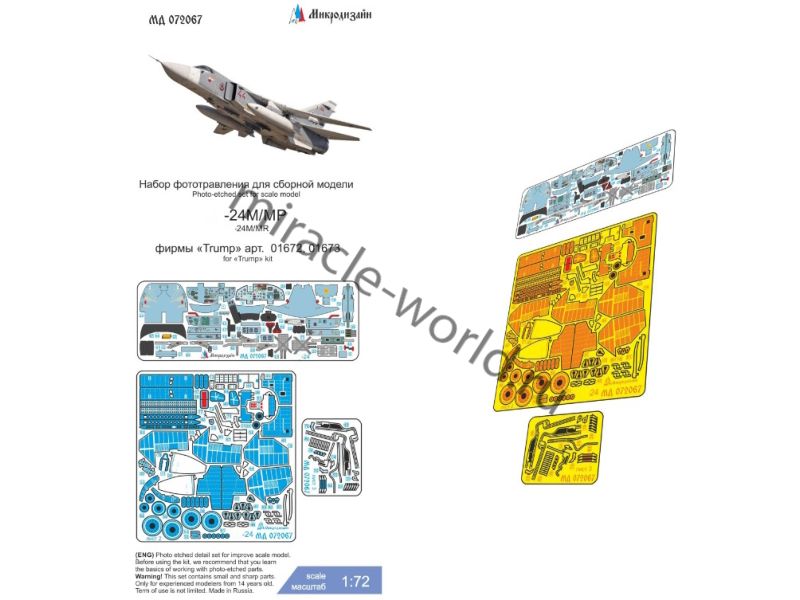 Микродизайн 072067 Набор цветного фототравления для Су-24М/МР от Trumpeter. Масштаб 1:72. Материал: латунь 0,15 мм. Набор комплектуется 3 платами фототравления (цветные приборные доски) и цветной инструкцией. Количество уникальных деталей: 85 шт. Уровень сложности - средний.