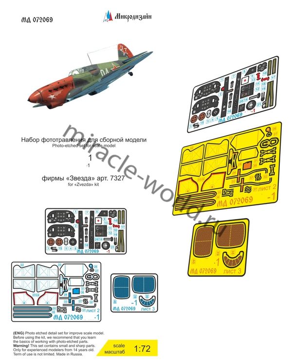 Микродизайн 072069 Набор фототравления для Як-1 от Звезды. Масштаб 1:72. Материал: латунь 0,15 мм. Набор комплектуется 3 платами фототравления (цветные приборные доски) и цветной инструкцией. Количество уникальных деталей: 40 шт. Уровень сложности - средний.