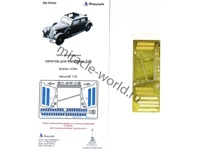МД 035250 Набор фототравления для модели Мерседес-Бенц 320 (тип 142) от ICM. Масштаб 1:35. Материал: латунь 0,17 мм. Набор комплектуется пластиной фототравления и полноцветной инструкцией.