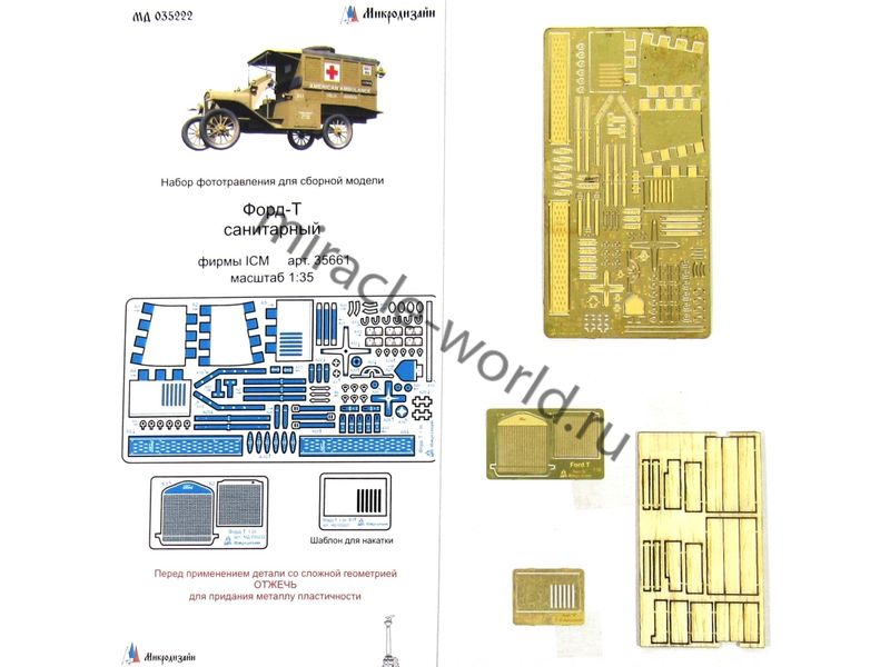 Микродизайн 035222 Ford Model T образца 1917г. (санитарный вариант) /набор фототравления/ 1/35
