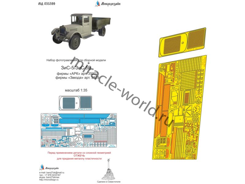 Микродизайн 035399 Автомобиль (З) тип 5 / тип 5В (Звезда, ARK) /основной набор фототравления/ 1/35