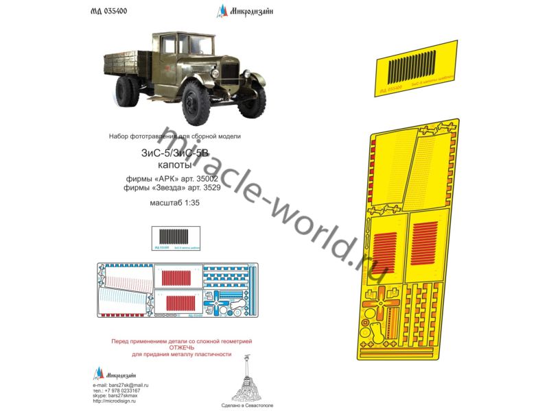 Микродизайн 035400 Автомобиль (З) тип 5 / тип 5В (Звезда, ARK) /капоты, набор фототравления/ 1/35