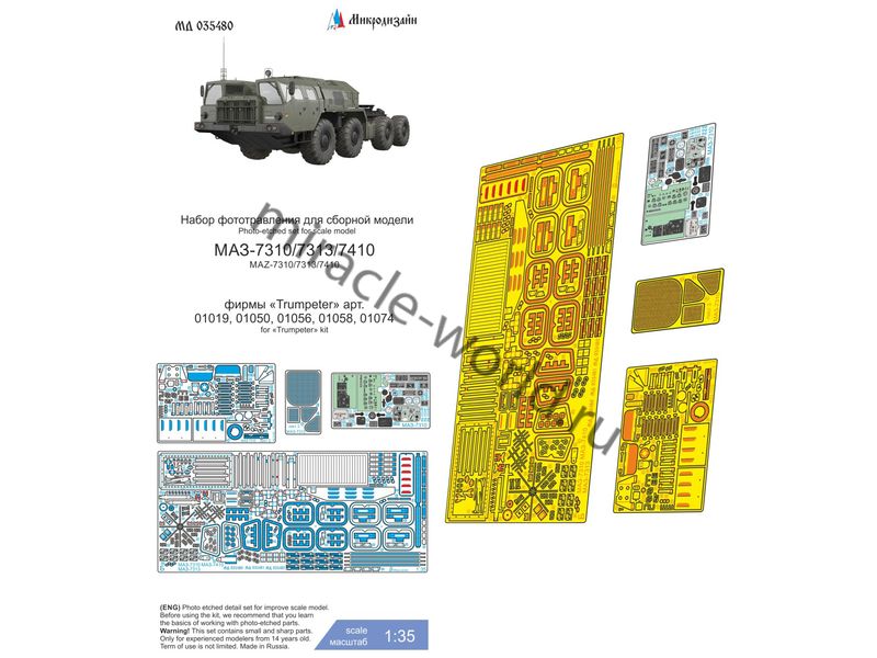 Микродизайн 035480 МАЗ-7310 (Trumpeter) /кабина, шасси, набор фототравления/ 1/35