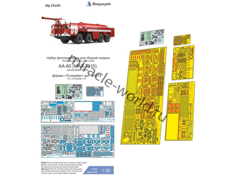 Микродизайн 035481 АА-60 на базе МАЗ-7310 + автоцистерна (Trumpeter) /набор фототравления/ 1/35