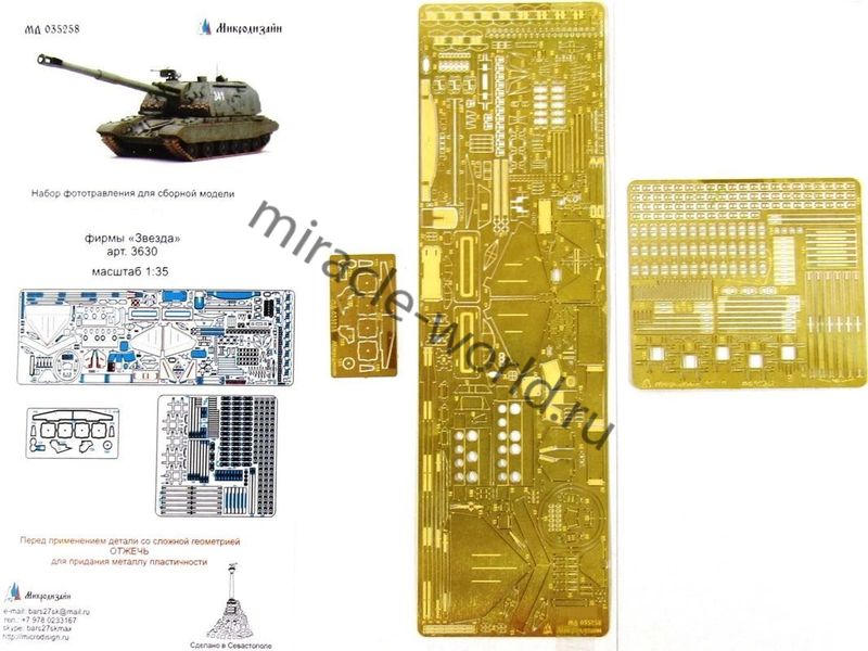 МД 035258 Набор фототравления для модели МСТА-С от Звезды. Набор комплектуется 3 платами фототравления (0,3 мм; 0,2 мм; 0,15 мм) и цветной инструкцией. Количество уникальных деталей: 165 шт. Уровень сложности - высокий.