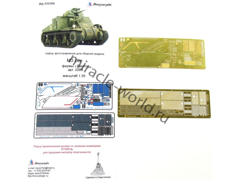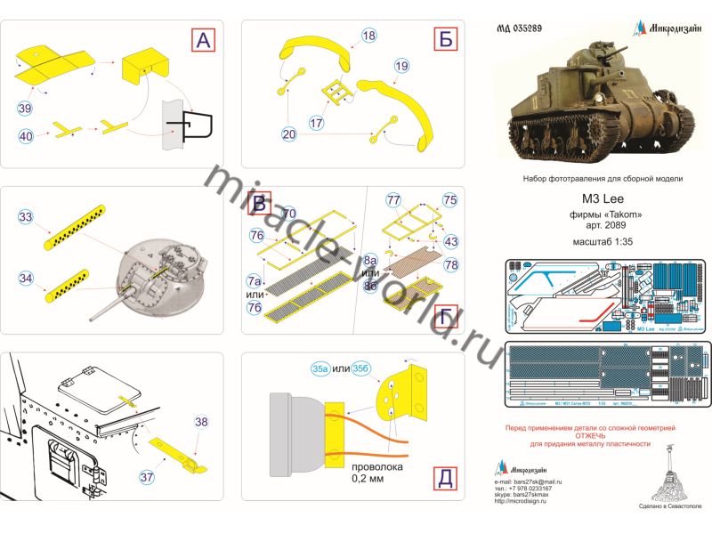 МД 035289 Набор фототравления М3 Ли от Takom. Масштаб 1:35. Набор комплектуется 2 платами фототравления. Количество уникальных деталей: 67. Уровень сложности - средний.