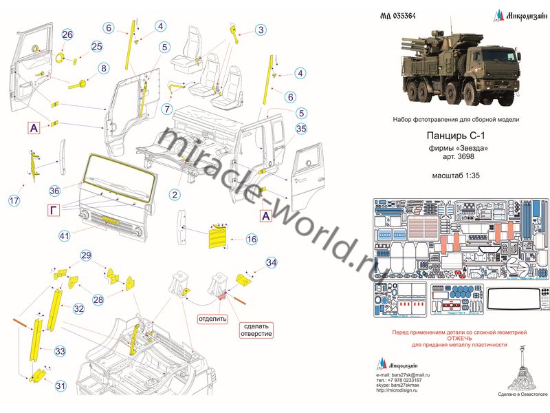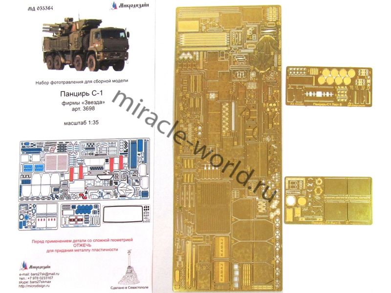 МД 035364 Набор фототравления на ЗРПК Панцирь С-1 (базовый набор) от Звезды. Масштаб 1:35. Набор комплектуется 3 платами фототравления, пленкой и цветной инструкцией. Количество уникальных деталей: 148 шт. Уровень сложности - высокий.