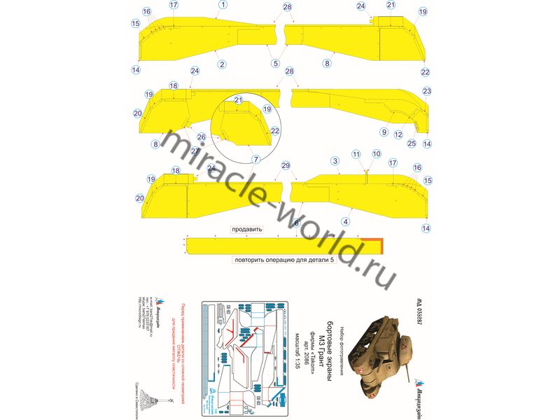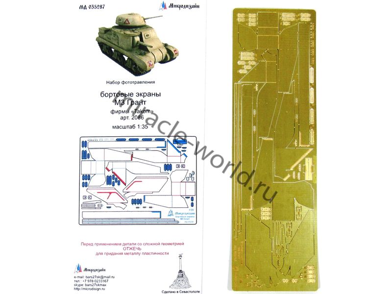 МД 035287 Набор фототравления бортовых экранов на М3 Грант от Takom. Масштаб 1:35. Набор комплектуется платой фототравления и цветной инструкцией. Количество уникальных деталей: 29. Уровень сложности - простой.