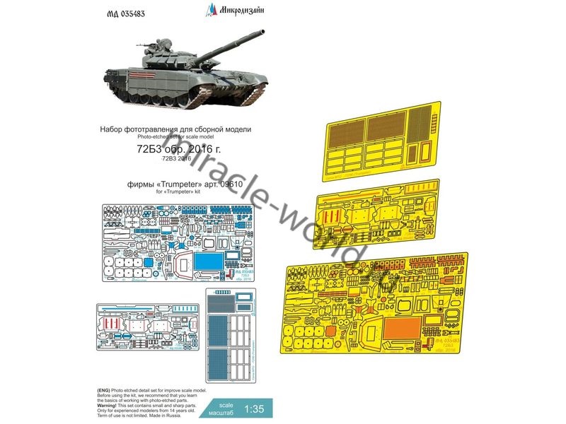 Микродизайн 035483 Танк тип 72Б3 обр. 2016 г. (Trumpeter) /набор фототравления/ 1/35