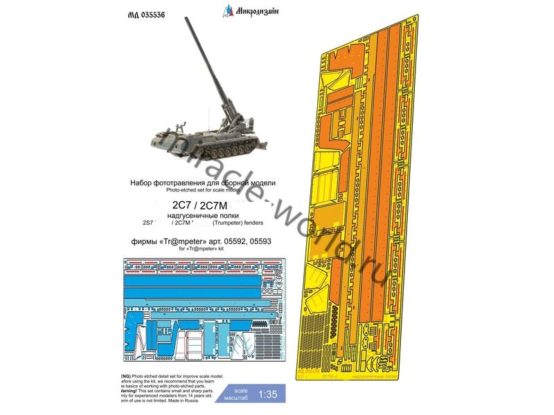 Микродизайн 035536 Набор фототравления надгусеничных полок на 2С7 "Пион" / 2С7М "Малка" от Trumpeter. Масштаб 1:35. Материал: латунь 0,2 мм. Набор комплектуется платой фототравления и цветной инструкцией. Количество уникальных деталей: 33 шт. Уровень сложности - средний.