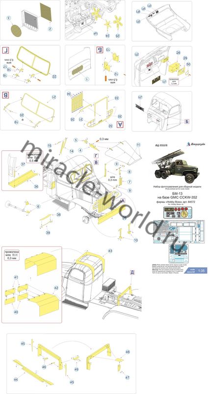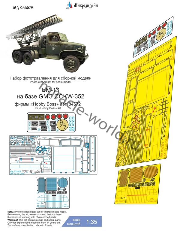 Микродизайн 035576 БМ-13 "Катюша" на базе GMC CCKW-352 (Hobby Boss) /набор фототравления/ 1/35