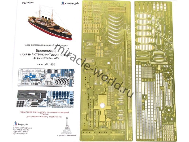 МД 400001 Набор фототравления на броненосец "Князь Потемкин-Таврический". Масштаб 1:400. Материал: латунь 0,15 мм. Набор комплектуется 2 пластинами фототравления и цветной инструкцией. Уровень сложности: средний.