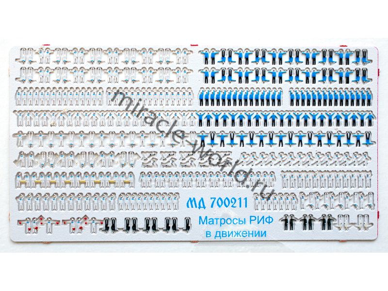МД 700211 Набор цветного двустороннего фототравления фигур матросов и офицеров Российского Императорского флота конца XIX - начала XX века в движении. Масштаб 1:700. Материал: латунь 0,15 мм. Набор выполнен по новой уникальной технологии. Уровень сложности: начальный.