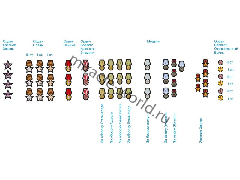 МД 035411 Набор орденов и медалей ВОВ выполненных в объеме и цвете. Масштаб 1:35. Набор комплектуется 14 основными наградами периода Великой Отечественной войны. Набор выполнен по новой уникальной технологии.
