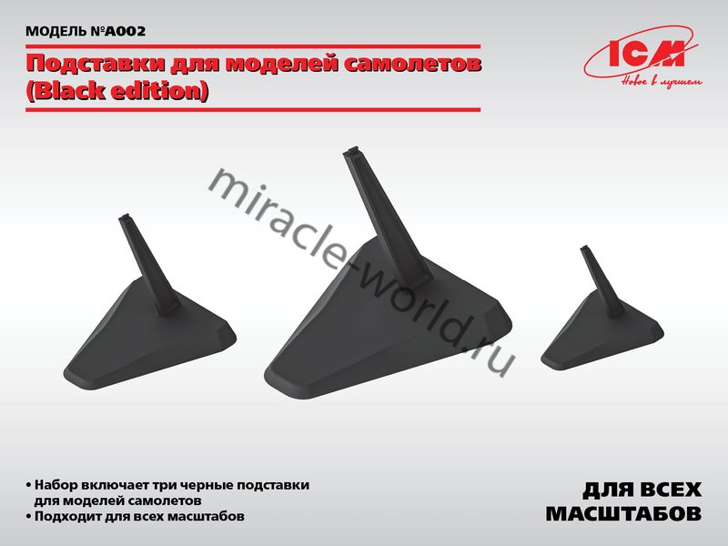 Сборная модель Подставки для моделей самолетов. Black Edition в масштабе 1/48, 1/72, 1/144 от фирмы ICM (артикул A002).