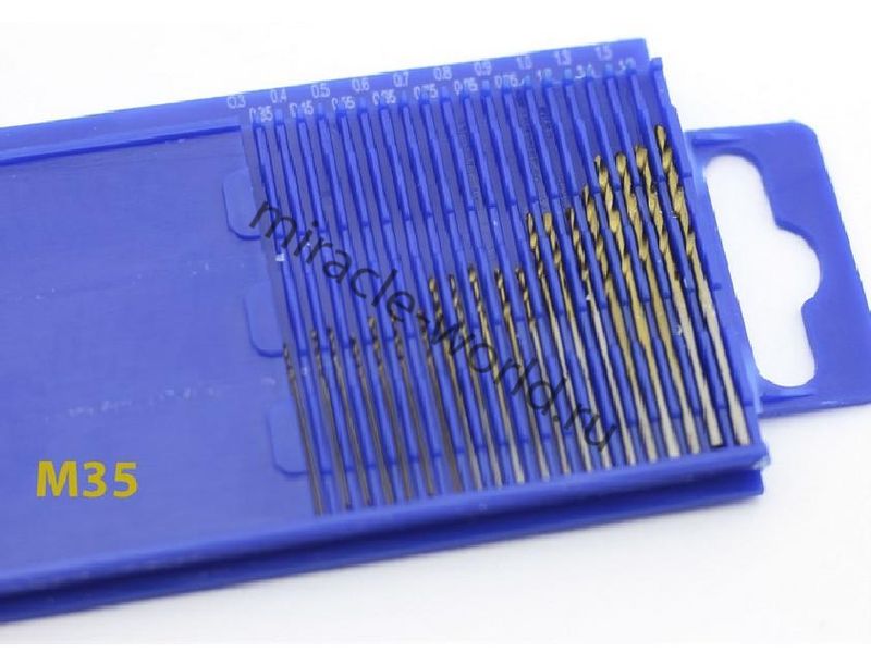 JAS 4280 Мини сверла 0.3-1.6мм (20шт.) HSS M35, нитрид-титановое покрытие