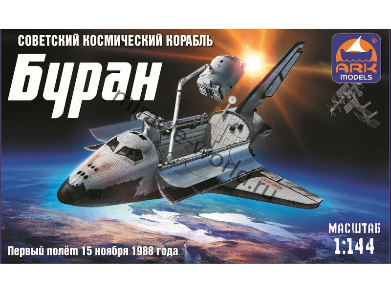 Сборная модель советского многоразового космического корабля "Буран" в масштабе 1/144 от фирмы ARK Models (артикул 14402d).