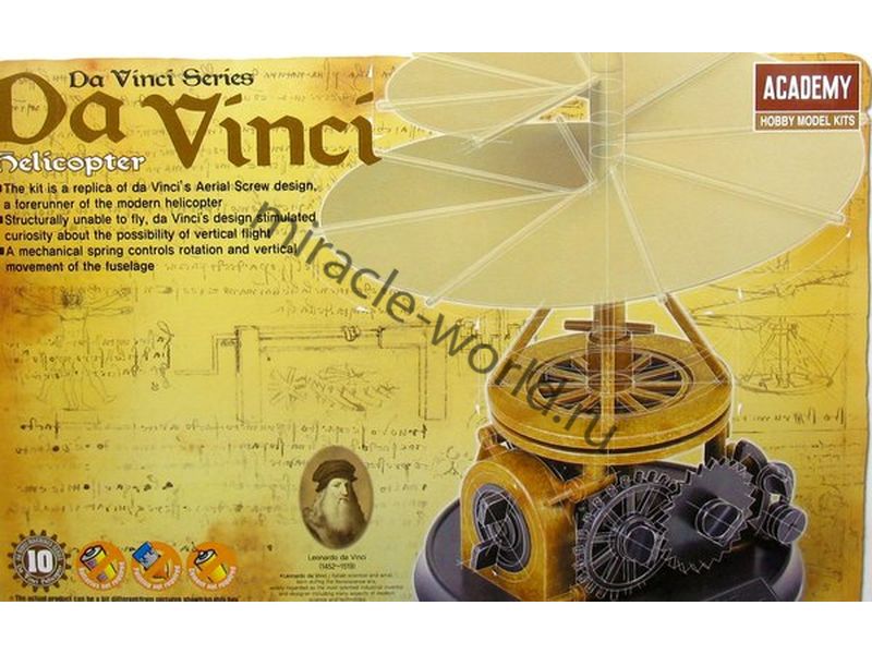 Сборная модель вертолета Леонардо Да Винчи Da Vinci Helicopter в масштабе от фирмы Academy (артикул 18159).