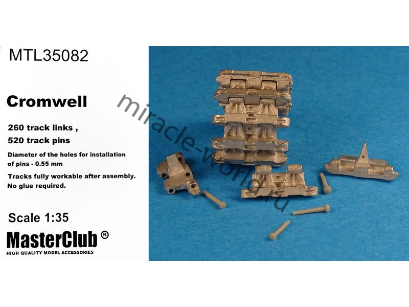 Дополнение для сборных моделей, наборные рабочие металлические траки для британских средних крейсерских танков: Cromwell в масштабе 1/35 от фирмы Master Club (артикул MTL35082).