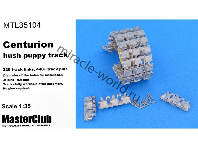 Дополнение для сборных моделей, наборные рабочие металлические траки для британских средних танков: Centurion hush puppy track в масштабе 1/35 от фирмы Master Club (артикул MTL35104).