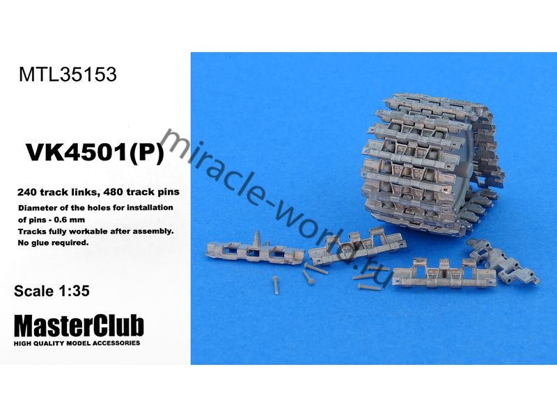 Дополнение для сборных моделей, наборные рабочие металлические траки для немецких тяжелых танков: VK4501(P) / VK45.01(P) в масштабе 1/35 от фирмы Master Club (артикул MTL35153).