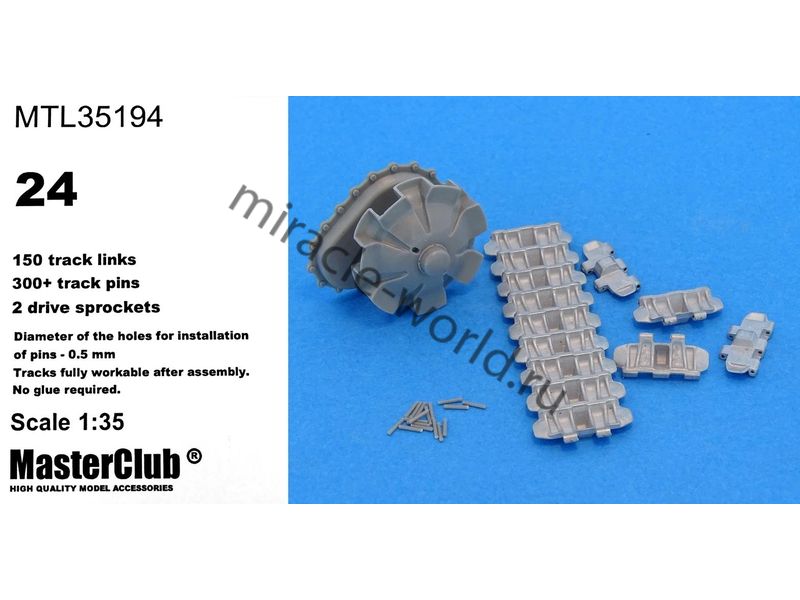 Дополнение для сборных моделей, наборные рабочие металлические траки для советских средних танков: Танк тип 24 в масштабе 1/35 от фирмы Master Club (артикул MTL35194).