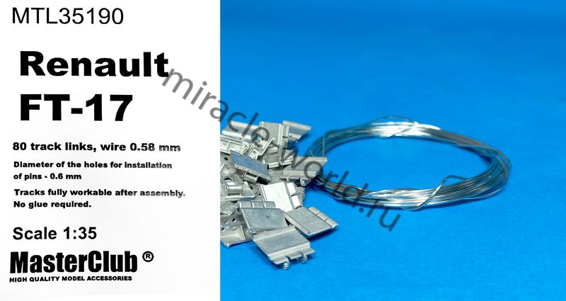 Дополнение для сборных моделей, наборные рабочие металлические траки для французских легких танков: Renault FT-17 в масштабе 1/35 от фирмы Master Club (артикул MTL35190).