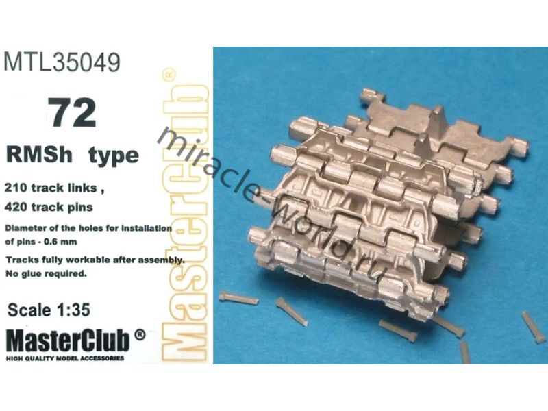 Дополнение для сборных моделей, наборные рабочие металлические траки для советских / российских основных боевых танков: Танк тип 72 ("РМШ") в масштабе 1/35 от фирмы Master Club (артикул MTL35049).