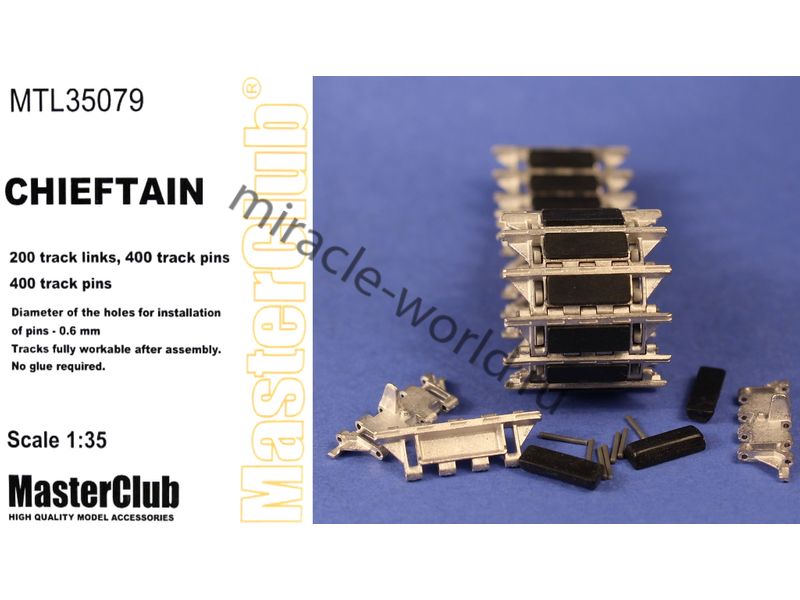 Дополнение для сборных моделей, наборные рабочие металлические траки для британских основных боевых танков: Chieftain в масштабе 1/35 от фирмы Master Club (артикул MTL35079).