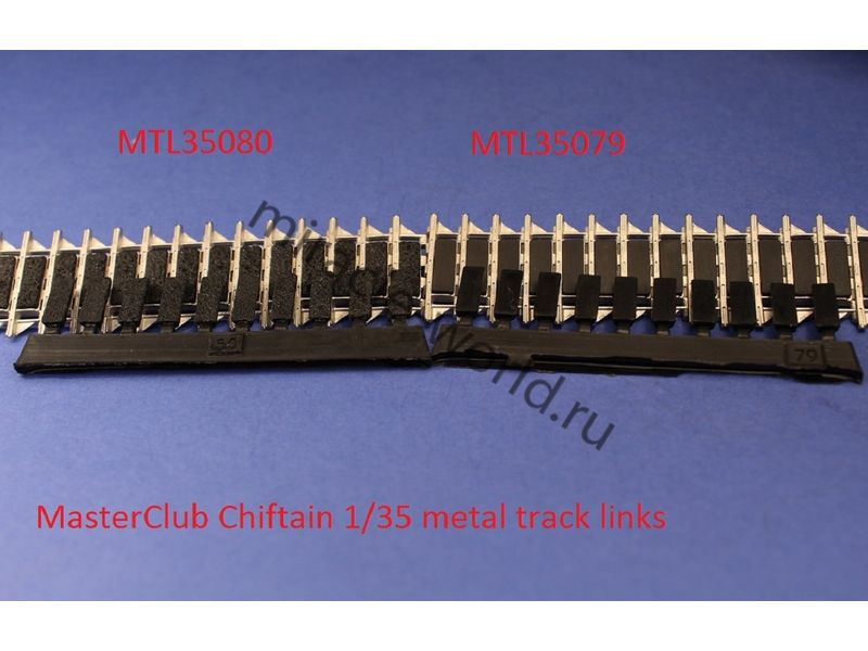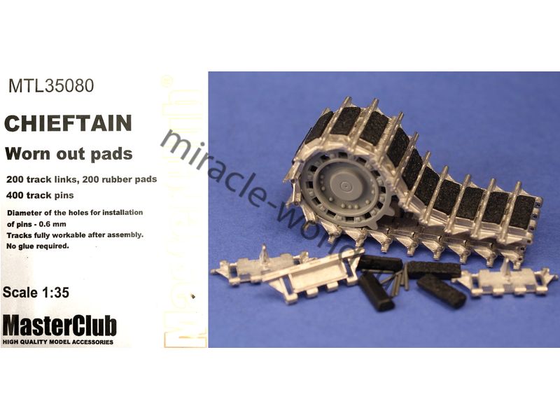 Дополнение для сборных моделей, наборные рабочие металлические траки для британских основных боевых танков: Chieftain с изношенными колодками в масштабе 1/35 от фирмы Master Club (артикул MTL35080).