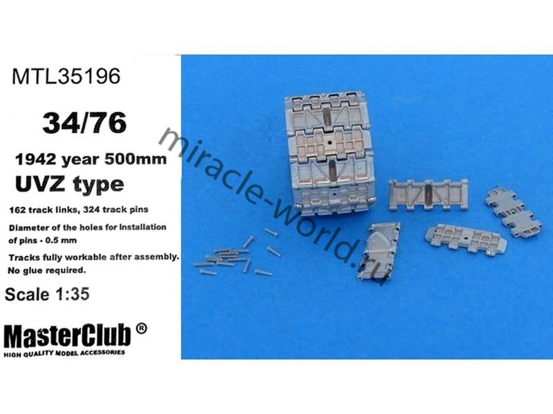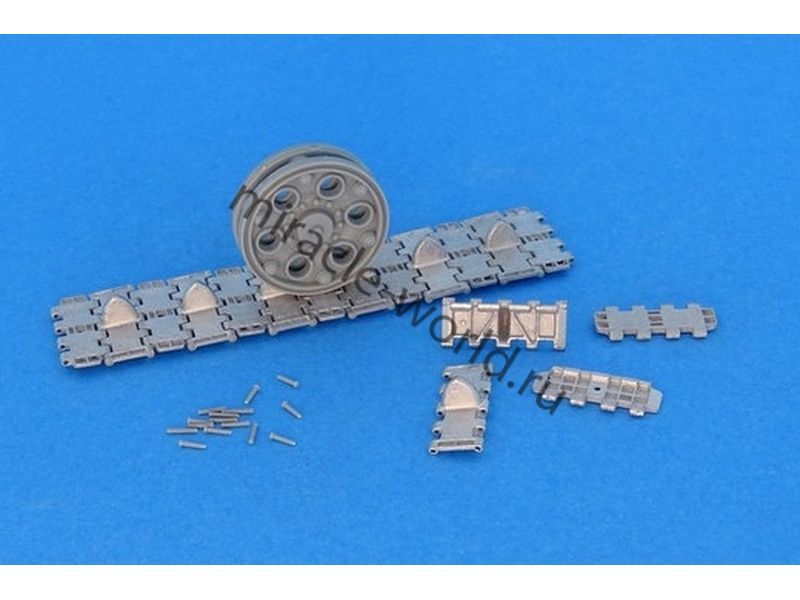 Дополнение для сборных моделей, наборные рабочие металлические траки для средних танков: Танк тип 34 образца 1942г. "шевронные" тип 3 в масштабе 1/35 от фирмы Master Club (артикул MTL35196).